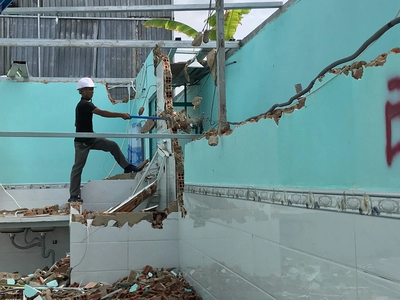 Các công nhân tiến hành tháo dỡ một công trình sai phép ở phường Hiệp Bình Chánh (quận Thủ Đức, TP.HCM) vào cuối tháng 7 vừa qua. Ảnh: THANH TUYỀN