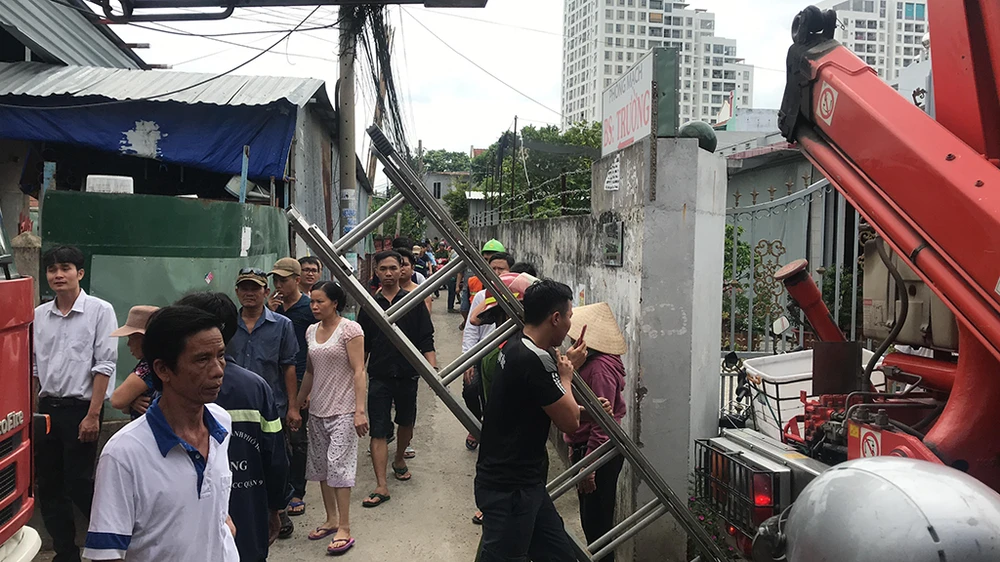 Để giải cứu nam thanh niên, lực lượng chức năng phải cắt điện toàn khu vực. Ảnh: HT