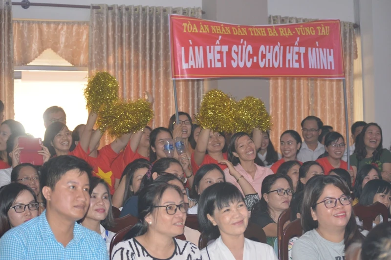 Cổ động viên đội "chủ nhà" là TAND BR-VT luôn sôi động, cổ vũ hết mình cho hội thi