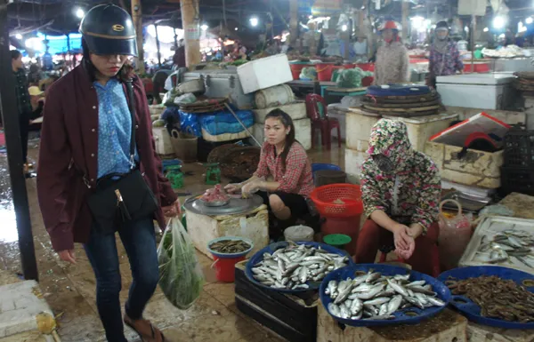 Hải sản ở chợ Hà Tĩnh (TP Hà Tĩnh) vẫn còn thưa vắng khách.