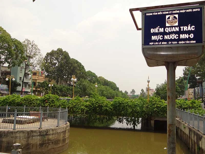 Khu vực cầu số 1, kênh Nhiêu Lộc - Thị Nghè sẽ được lắp trạm quan trắc chất lượng nước, trước đó nơi đây đã lắp đặt trạm quan trắc về mực nước. Ảnh: KB