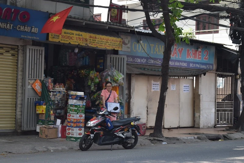 Thi thoảng bắt gặp vài cửa hàng tạp hóa, tiệm sửa, rửa xe... vẫn còn hoạt động.