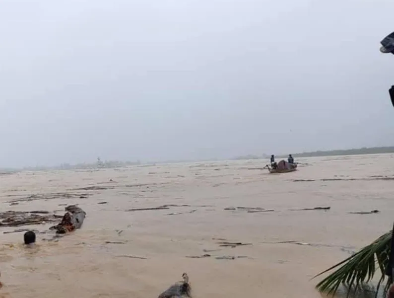 Lũ lên nhanh ở ngã ba sông Kiến Giang, Long Đại và Nhật Lệ, khiến vùng rốn lũ thôn Trần Xá bị cô lập. Ảnh: CTV