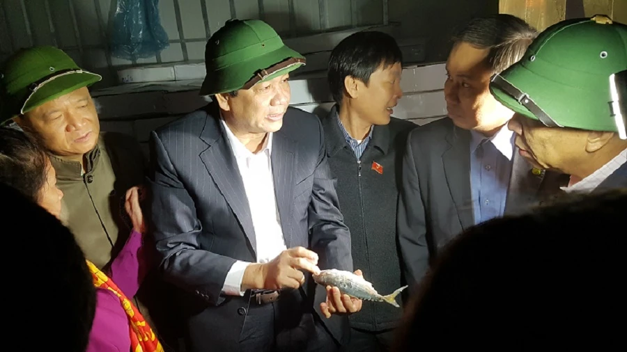 Ngày 15-12, bộ trưởng-chủ nhiệm Văn phòng Chính phủ, tổ trưởng tổ công tác của Thủ tướng Chính phủ cùng các bộ, ngành trung ương đã có chuyến thị sát việc hỗ trợ bồi thường thiệt hại, ổn định cuộc sống cho người dân, tiến độ giải quyết các lô hàng hải sản trong sự cố môi trường biển do Formosa thu mua tạm trữ đang tồn kho trên địa bàn tỉnh.