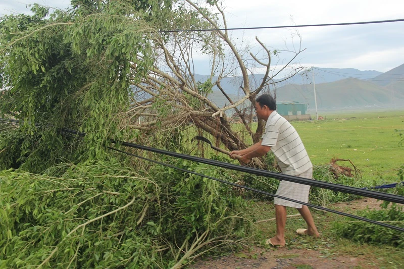 Trong sáng 16-9, theo ghi nhận của PV, nhiều người dân tại Quảng Bình sửa lại nhà cửa, chặt bỏ những cây bị đổ gãy.