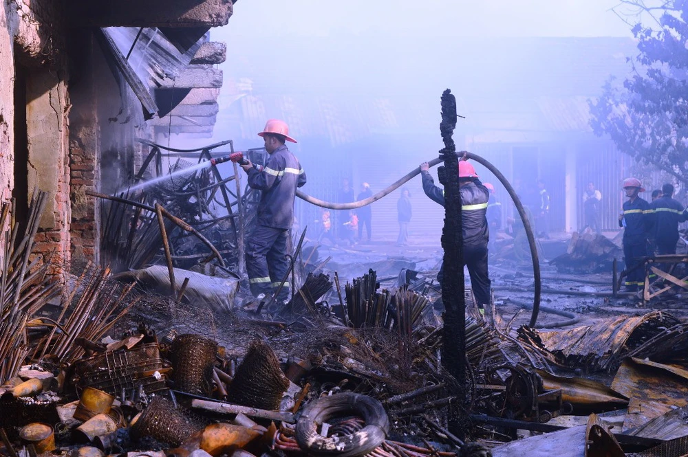 Theo ước tính, đã có 20 gian hàng bán điện máy, phụ tùng xe đạp, sơn… bị thiêu rụi. Ước tính thiệt hại hàng tỉ đồng.
