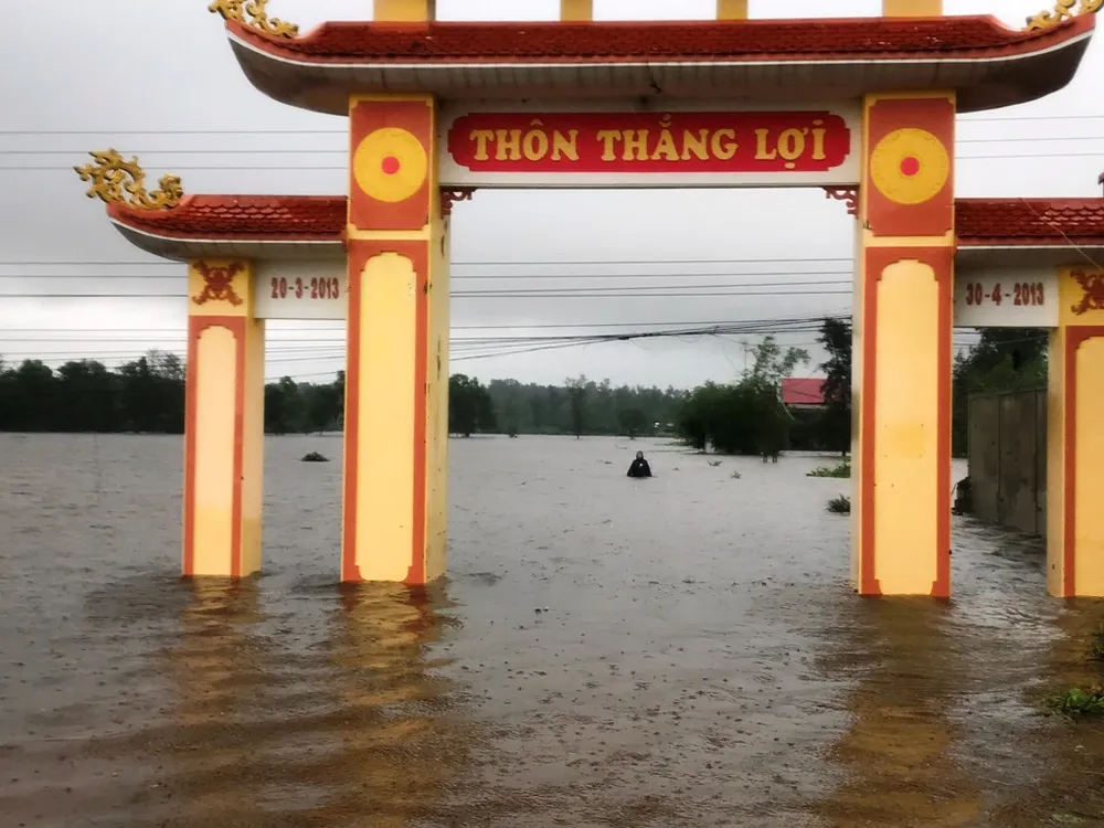 Theo ghi nhận, tại huyện Lệ Thủy, nhiều nơi nước ngập sau hơn 3 mét, nhiều nhà ngập tới nóc. Những nhà này đã được cứu hộ đến nơi cao hơn để trú ngụ. Người dân trong vùng ngập lụt đang thiếu lương thực, thực phẩm.