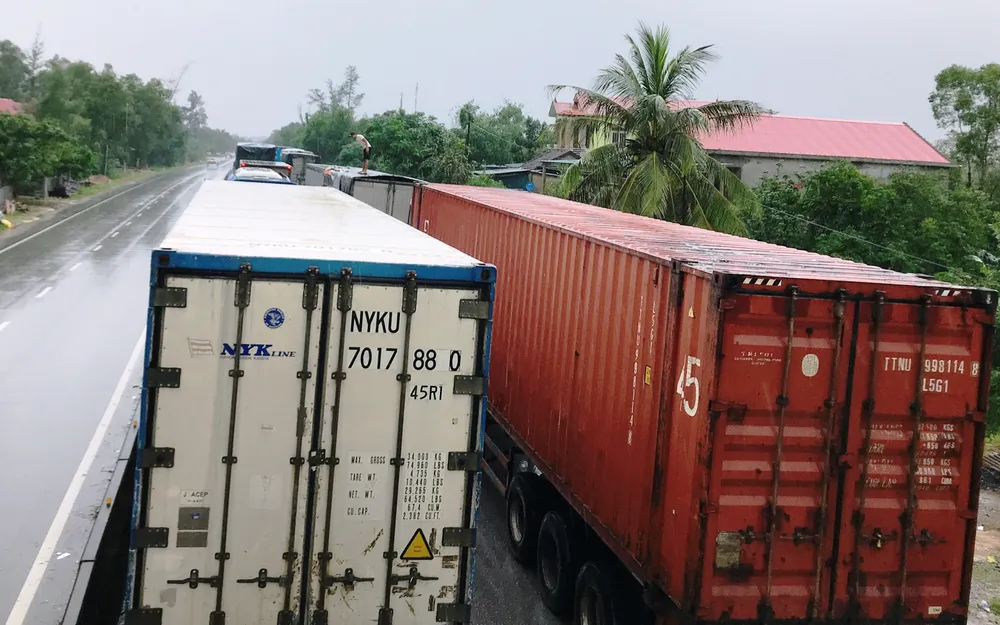 Giao thông nhiều nơi bị chia cắt, quốc lộ ngập sau, xe nằm hàng dài trên đường. Ảnh: HẢI HIẾU