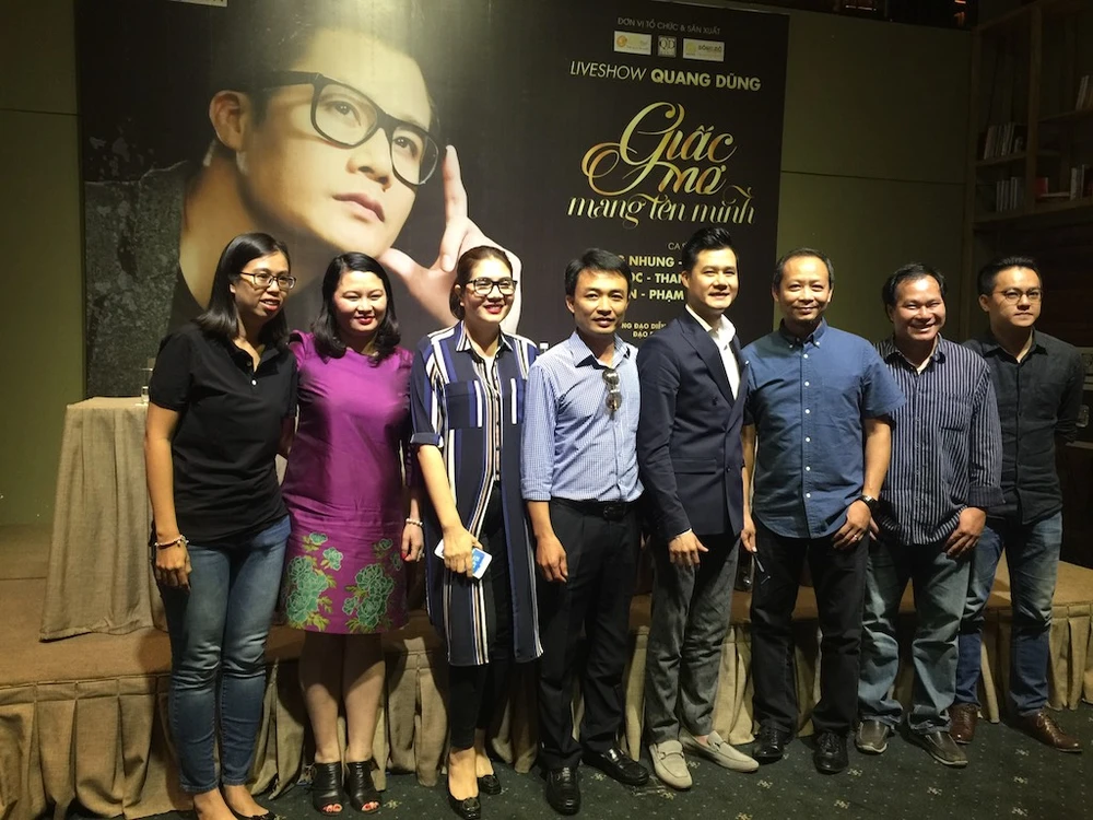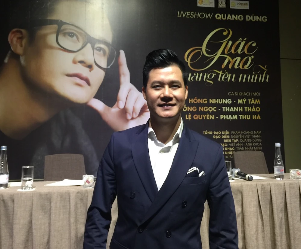 Trong buổi gặp gỡ báo chí vào chiều 15-2 để công bố liveshow Giấc mơ mang tên mình, ca sĩ Quang Dũng cho biết anh vừa được cấp phép một ca khúc của nhạc sĩ Diệu Hương và anh đang tiếp tục xin phép một số ca khúc để dự định đưa vào liveshow của mình.