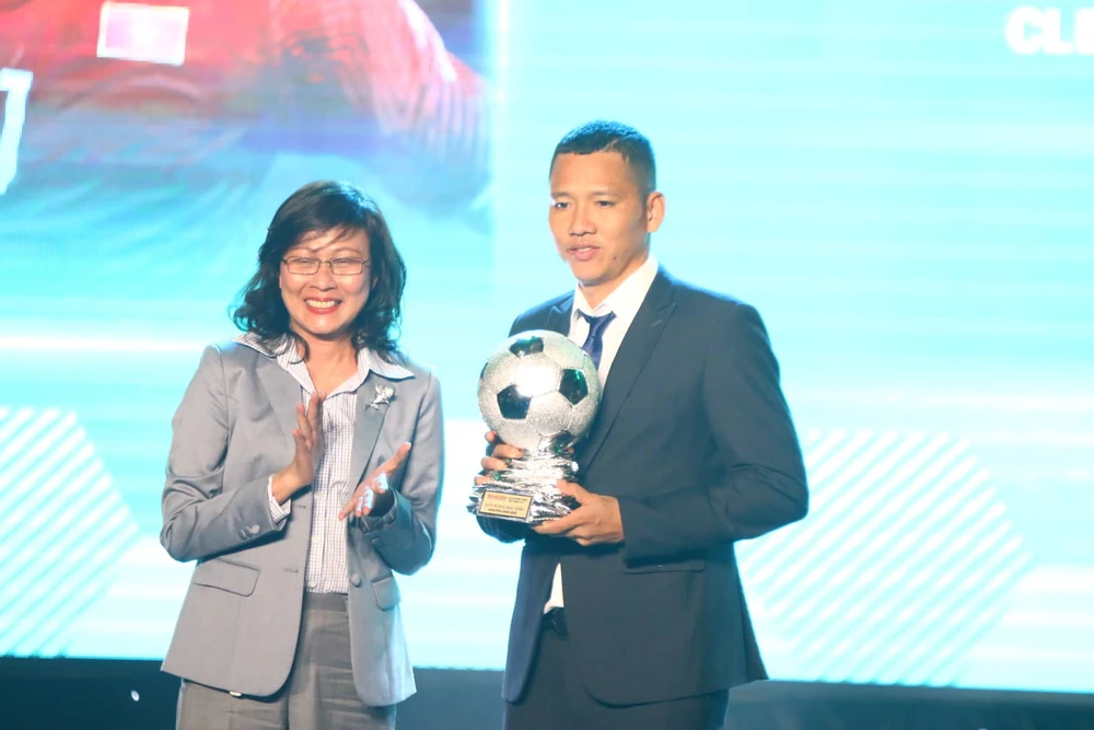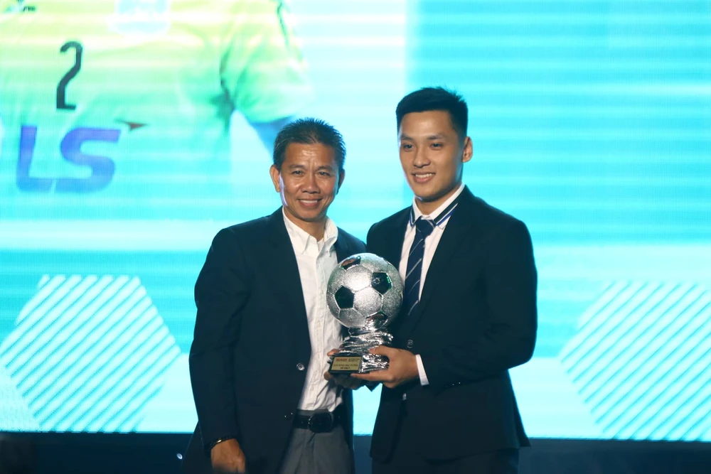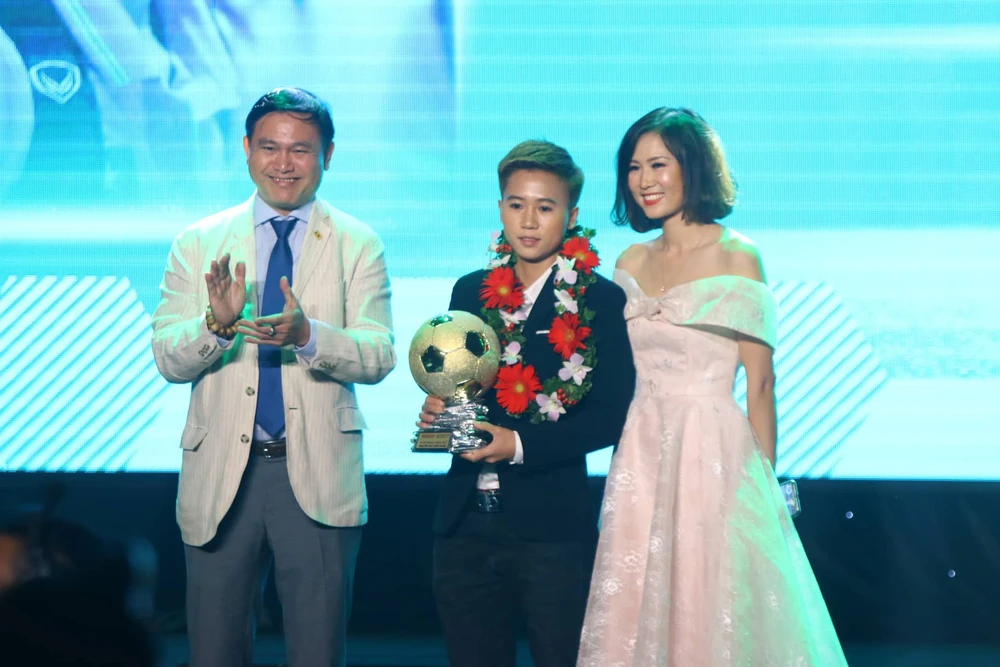 Đoàn Văn Hậu nhận danh hiệu Cầu thủ trẻ xuất sắc.