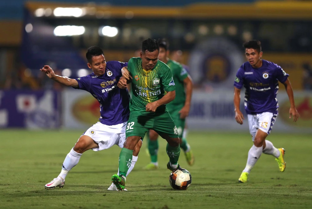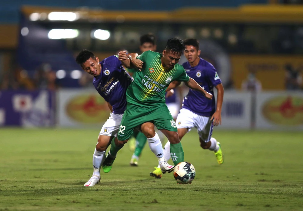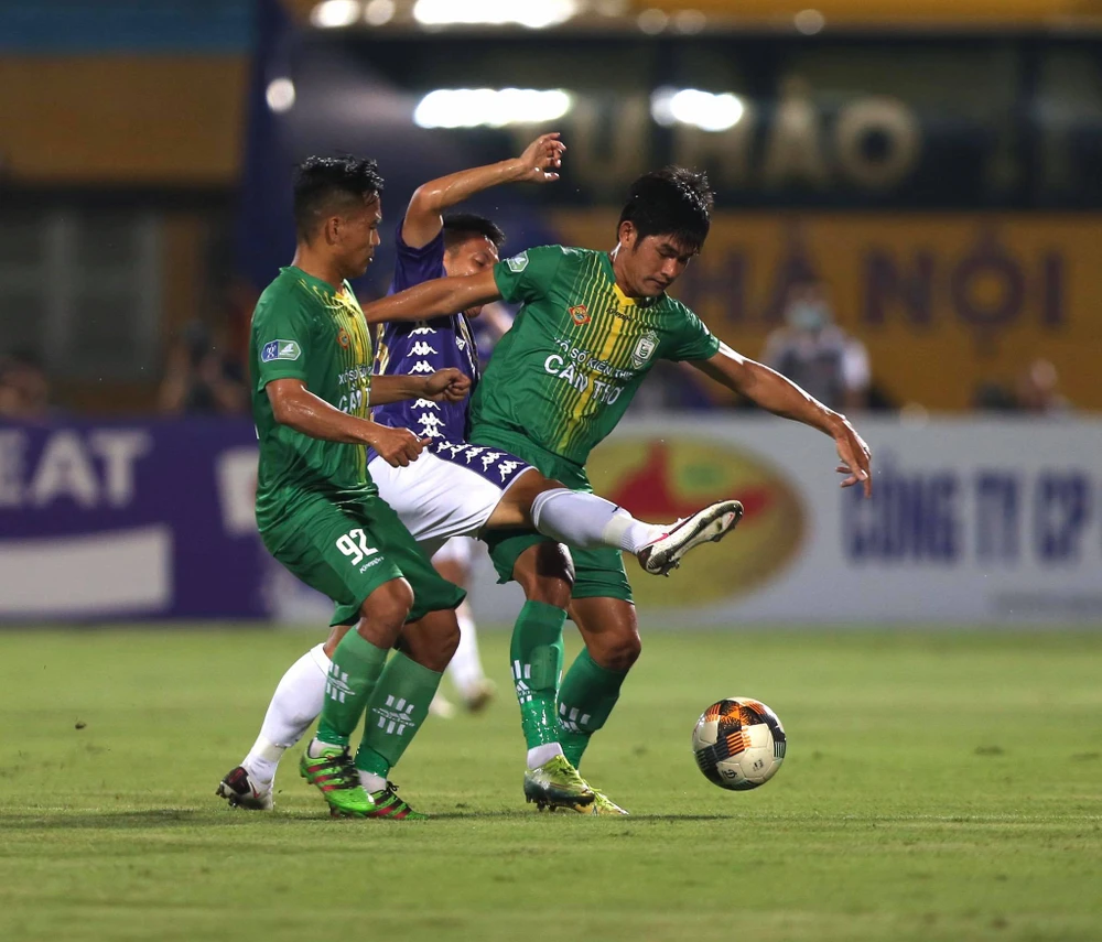 Mặc dù các cầu thủ Cần Thơ rất nỗ lực tranh chấp và ngăn cản đồng nghiệp Hà Nội...