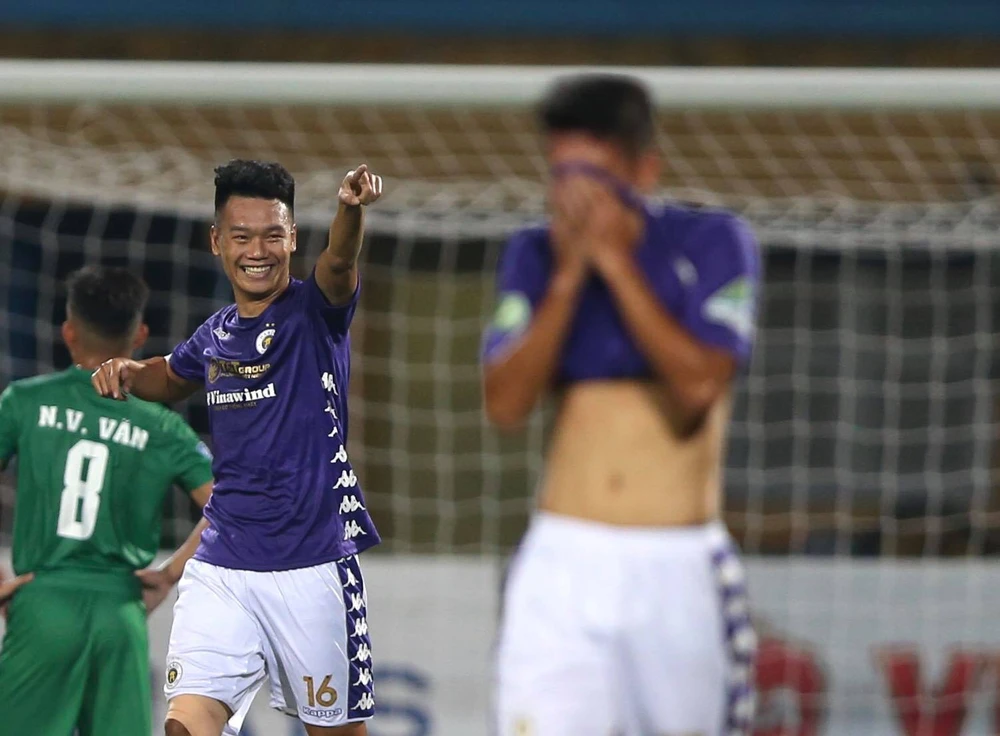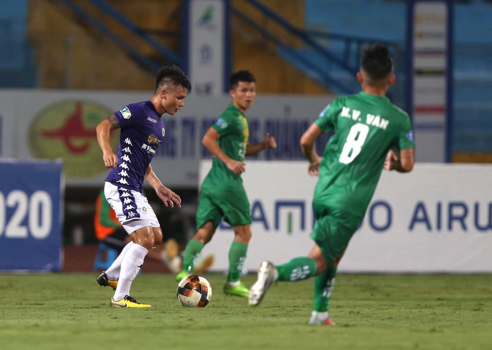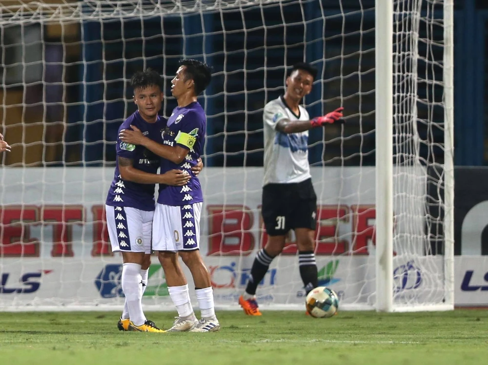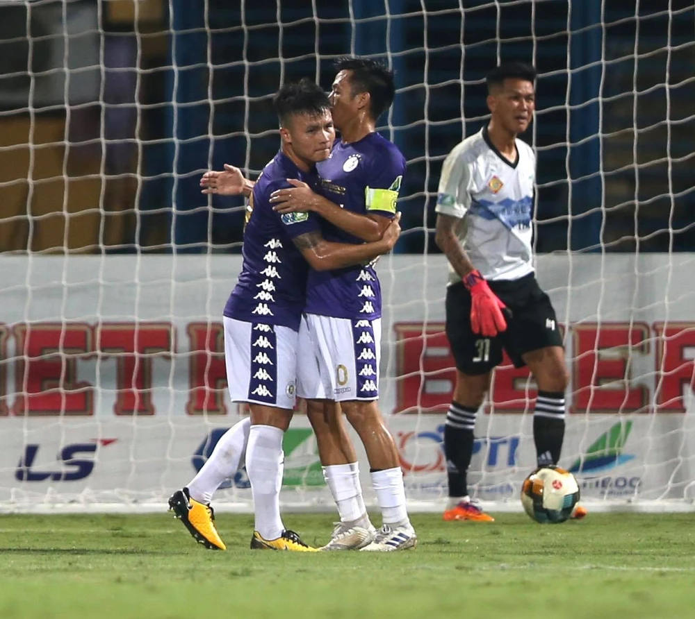 Quang Hải tiếp tục có những màn độc diễn và ghi bàn thắng đầu tiên của mình ở mùa giải này, trước khi Văn Quyết lập cú đúp giúp Hà Nội dẫn trước Cần Thơ 4-0 ngay trong hiệp một.