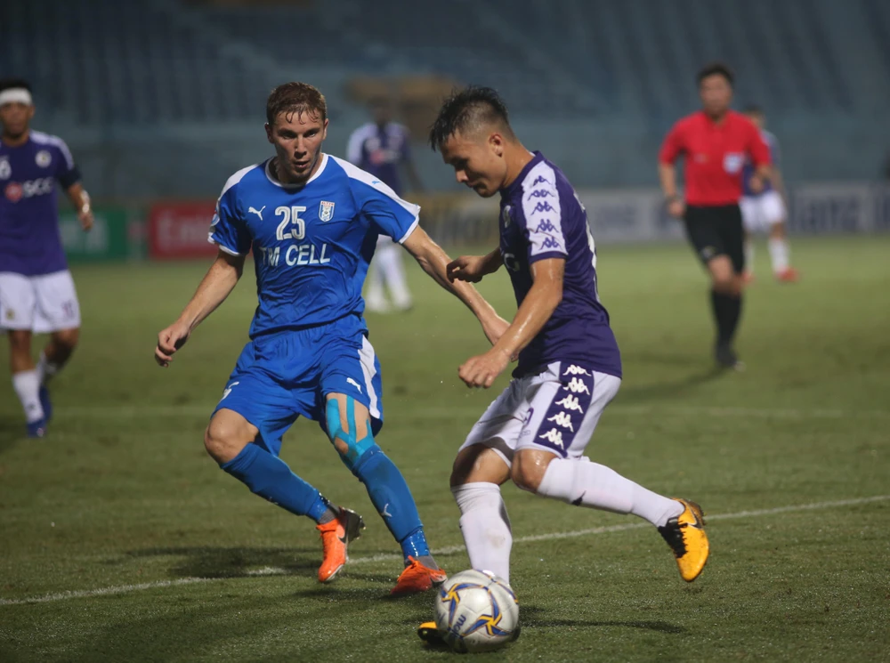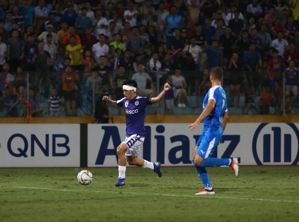 Văn Quyết còn ảnh hương chấn thương không có phong độ cao nhất nhưng luôn thể hiện sự quyết tâm có một giải đấu AFC Cup để đời. Ảnh: NGỌC DUNG