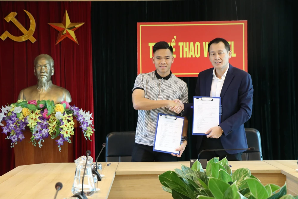 Thủ môn đội tuyển quốc gia Trần Nguyên Mạnh, tiền vệ Hồ Khắc Ngọc chính thức đặt bút ký hợp đồng ba năm với CLB Viettel, chuẩn bị V-League mùa sau.