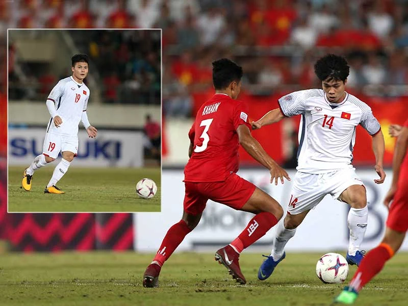 Quang Hải (ảnh nhỏ) lùi sâu tạo nhiều đất diễn cho Công Phượng. Ảnh: NGỌC DUNG