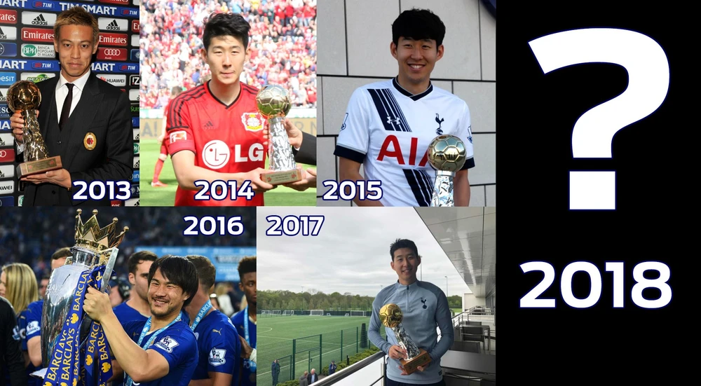 Son Heung Min của tuyển Hàn Quốc ba lần đoạt giải thưởng hay nhất châu Á.