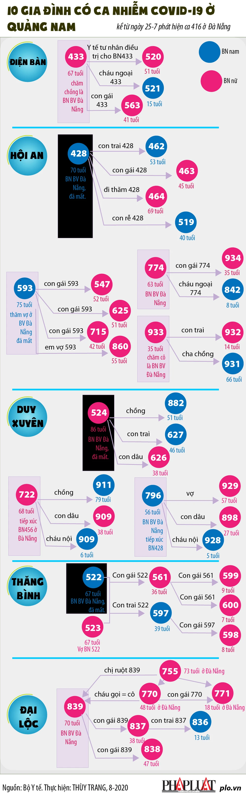 Cập nhật COVID-19 12-8: 23 ca kể từ ca 842, BN tử vong thứ 17 (PLO)- Việt Nam ghi nhận 23 ca nhiễm mới ở 4 tỉnh thành, 1 ca khỏi và 4 ca tử vong (các ca thứ 14, 15, 16, 17) đều ở Đà Nẵng, Quảng Nam, Quảng Trị trong vòng 2 ngày từ 10-8 đến 12-8.