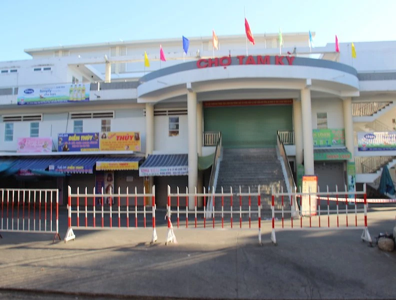 Phong tỏa một phần chợ Tam Kỳ để phòng chống COVID-19. Ảnh: TN