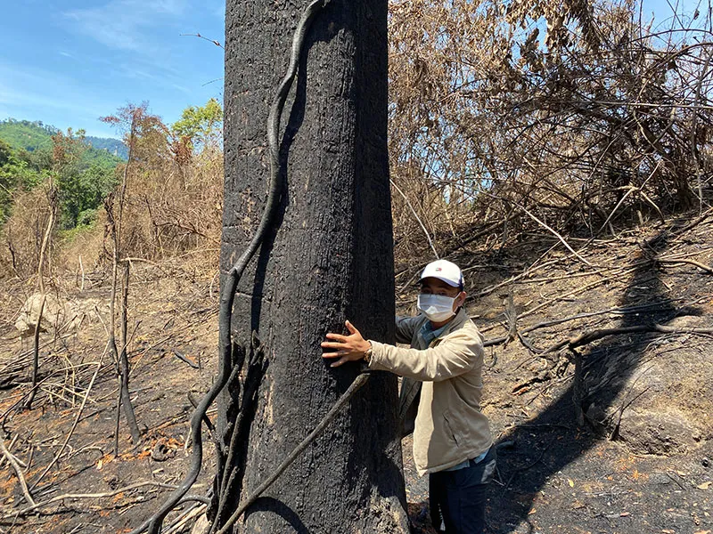 Những cây bị cháy có cả cây gỗ có đường kính gần 1 m. Ảnh: THANH NHẬT