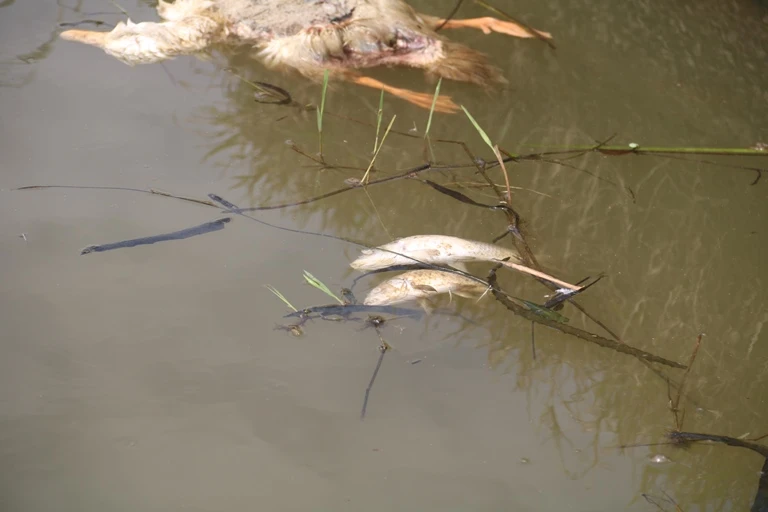 Cá chết cùng xác động vật phân hủy bốc mùi hôi. Ảnh: HT