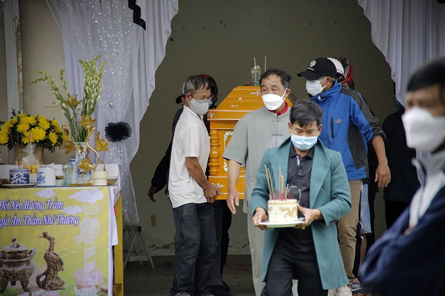 Thân nhân cùng chính quyền địa phương lo hậu sự cho các nạn nhân. Ảnh: THANH NHẬT