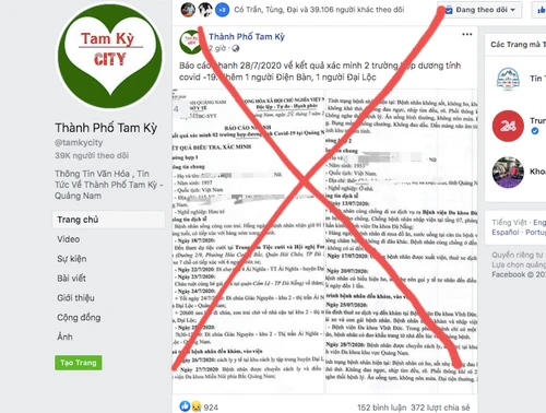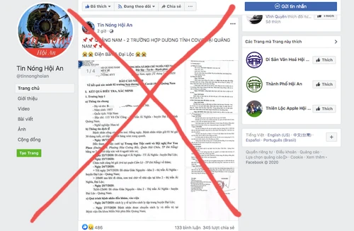 Các trang facebook có tên như: Tam Kỳ, Tôi yêu Tam Kỳ, Đồng hương Quảng Nam, Tin Nóng Hội An, Yêu Đà Nẵng, Đà Nẵng… đồng loạt đăng tải các tấm ảnh có nội dung báo cáo nhanh của Sở Y tế tỉnh Quảng Nam và khẳng định đã có hai ca nhiễm COVID-19.