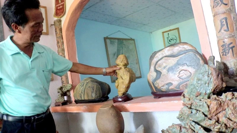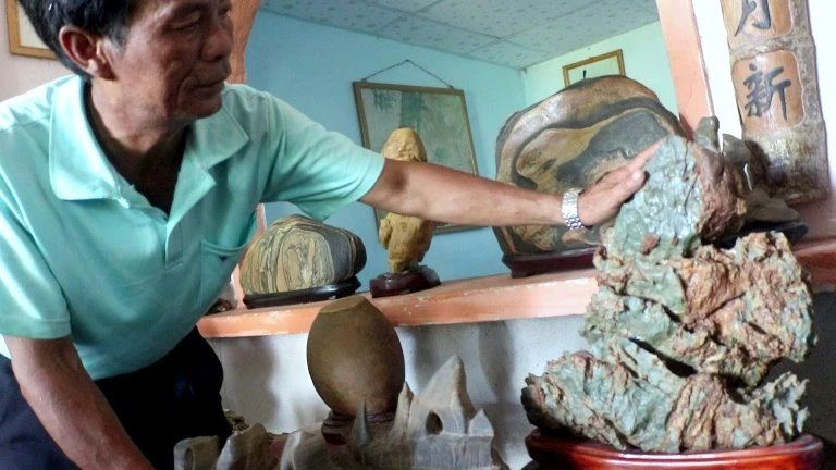 Kể về cuộc đam mê nghìn trùng của mình, người đàn ông hơi chững lại một chút bên ngụm trà rồi bộc bạch. Xưa nghèo lắm, làm mấy sào ruộng không đủ ăn. Nhưng rồi chả hiểu vì sao thấy đá lại ghiền. Ghiền đá còn hơn cả vợ. Rồi có dăm an lúa gặt được, một phần dành để ăn, một ít bán lấy tiền đi… tìm đá.