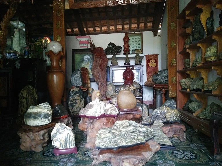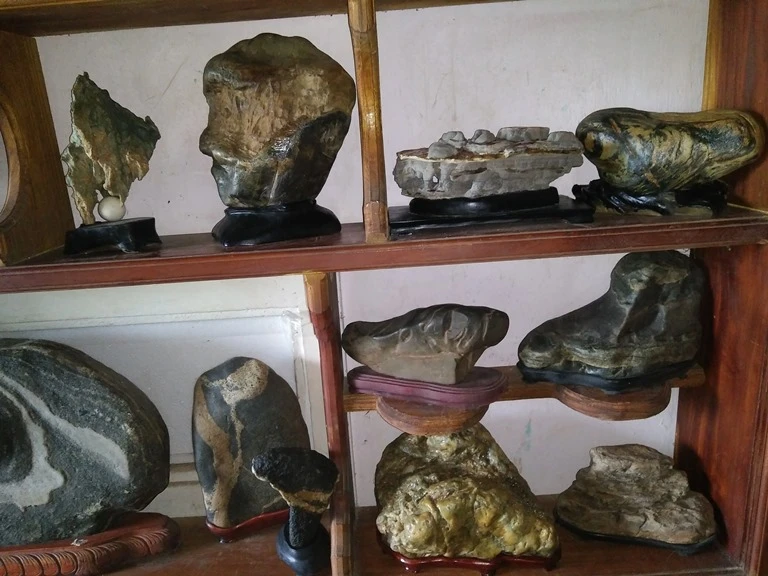 Những tác phẩm đá cảnh được chưng trong ngôi nhà của ông Thịnh.