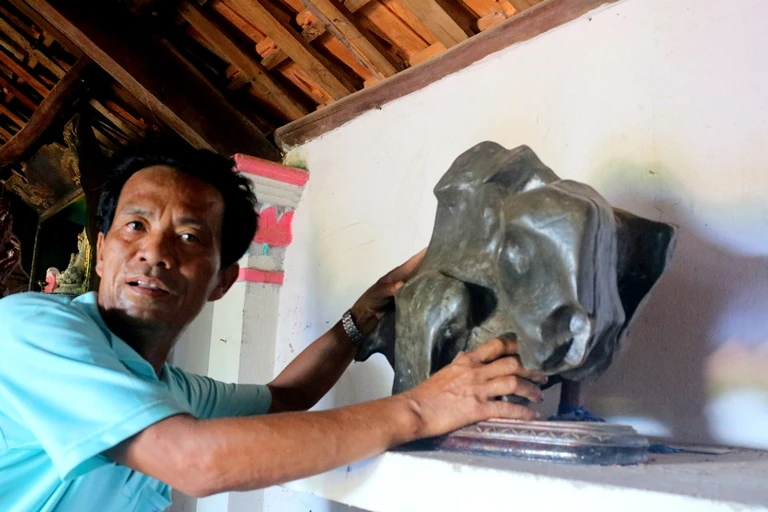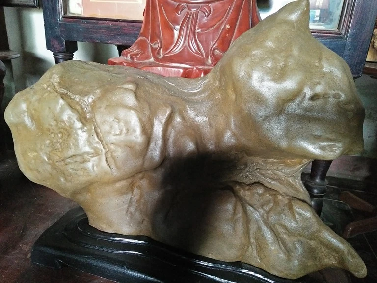 “Tôi tìm thấy nó vào năm 2001, ở khu vực Hòn Kẽm, Quế Sơn. Sau đó mang về nhờ thợ làm đế cho tác phẩm này. Nhiều lễ hội festival, tác phẩm này được đem trưng bày khiến nhiều người yêu thích. Có những tay chơi là đại gia trả cả trăm triệu đồng nhưng tôi quyết không bán. Đó là kỷ niệm của cuộc đời tôi, trong nó có một phần đời tôi”.