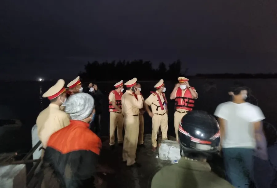 Lực lượng chức năng xuyên đêm tìm kiếm nạn nhân mất tích trong vụ lật ca nô làm 17 người chết hôm 26-2. Ảnh: TN