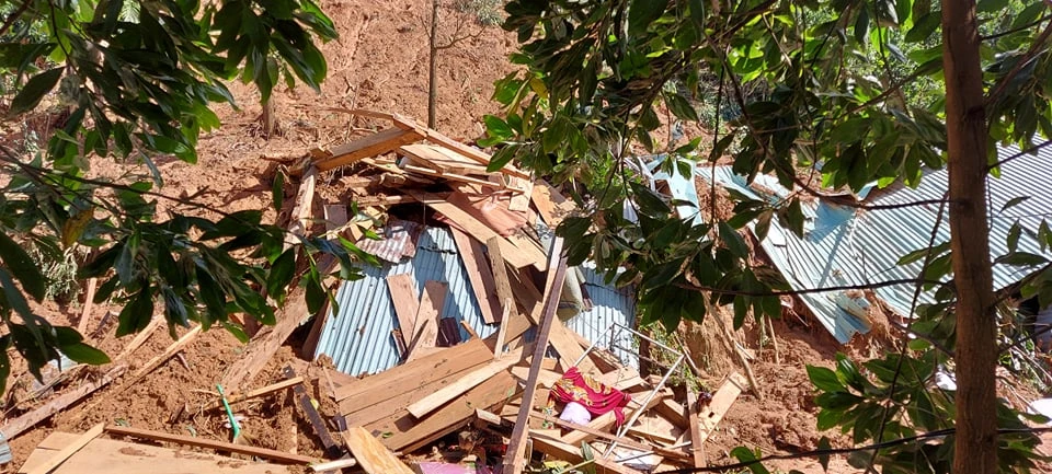 Hiện trường vụ sạt lở ở thôn Trà Vân, huyện Nam Trà My. Ảnh: CTV