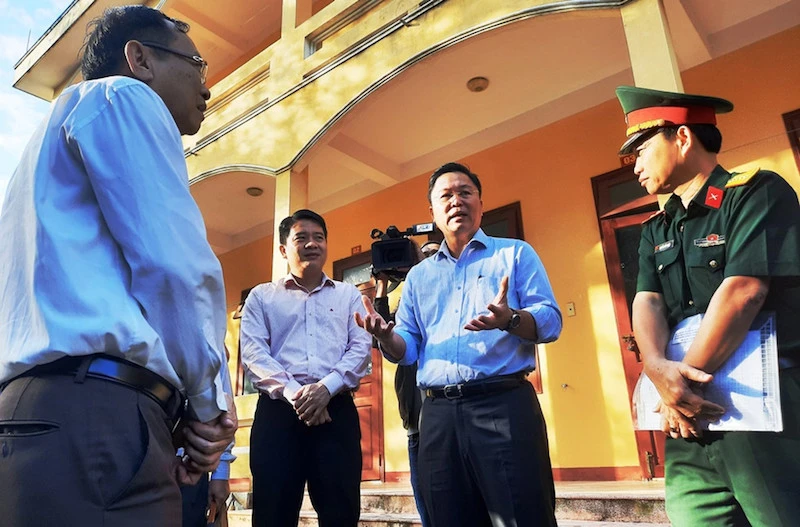 Chủ tịch UBND tỉnh Quảng Nam Lê Trí Thanh (áo xanh ở giữa) kiểm tra khu cách ly của tỉnh. Ảnh: CTV