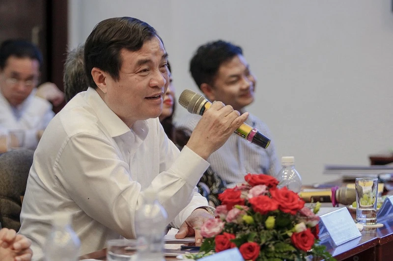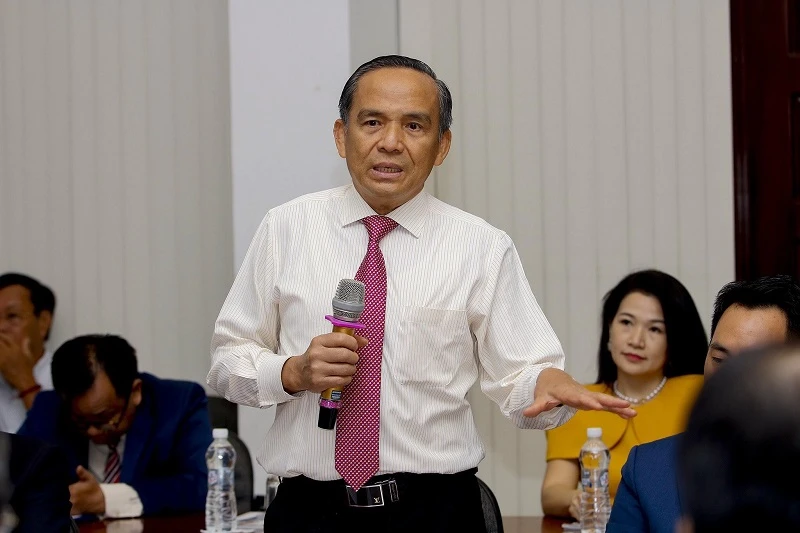 Chủ tịch Hiệp hội Bất động sản TP.HCM Lê Hoàng Châu hiến kế chính sách đầu tư cho lãnh đạo tỉnh Quảng Nam. Ảnh: NGUYỆT NHI