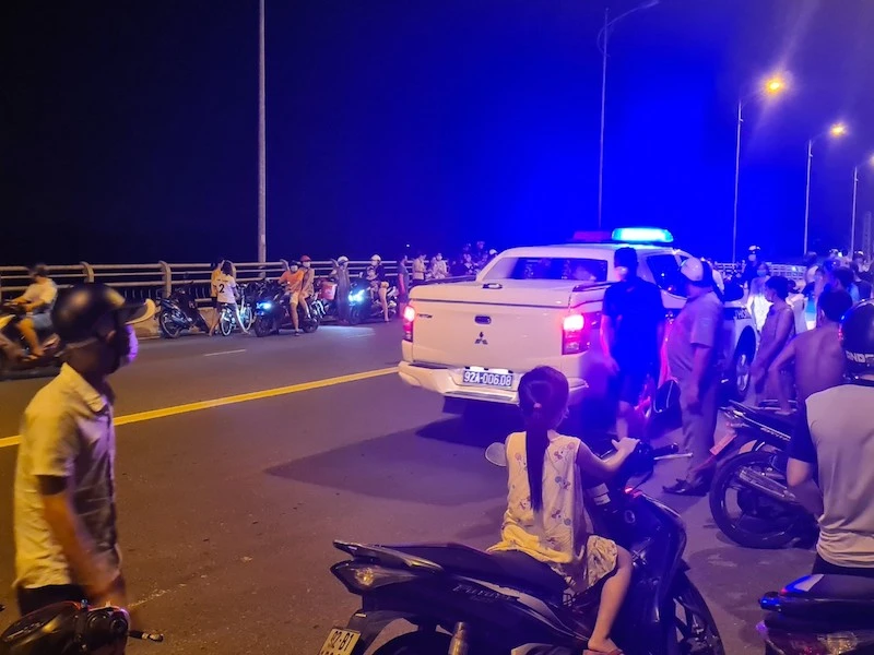Tối 25-8, tại cầu Kỳ Phú 2 (phường Phước Hoà, TP Tam Kỳ, Quảng Nam), hàng trăm người đã tập trung hai bên cầu để xem, chụp ảnh tìm người nhảy cầu tự tử.