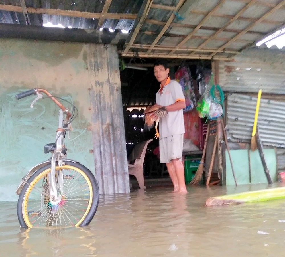 Vừa đưa tay bắt mấy con gà ngoài vườn đang ướt nước, ông Nguyễn Văn Hiền (trú thôn 3, xã Duy Thành) buồn bã nói, mấy sào đậu ve bán tết giờ coi như mất trắng còn mấy con gà nuôi thì cũng đang ngáp chờ chết vì đuối nước.