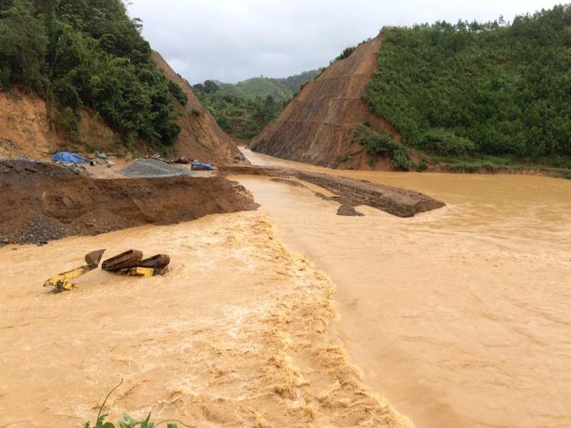 Một số tuyến đường bị chia cắt tại huyện Tây Giang. Ảnh: B.R.Quân.