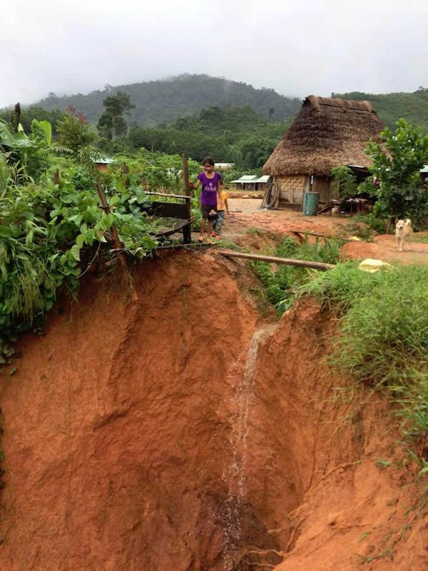 Trong khi đó, tại huyện miền núi Tây Giang, việc mưa lớn do bão số 4 suốt hai ngày qua khiến nhiều làng mạc của người dân bị sạt lở nghiêm trọng. Đặc biệt là tại xã A Tiêng. Anh Briu Quân cho biết: "Một đêm mưa trút khi bão số 4 ngang qua, sáng nay em về với làng thấy nguy cơ mất làng do sạt lở rất cao...".