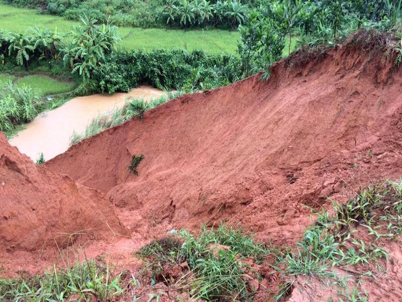 Sạt lở hình thành những hố tử thần cực nguy hiểm. Ảnh: B.R.Quân.