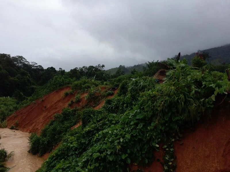 Sạt lở tại một khu dân cư tại huyện miền núi Tây Giang. Ảnh: B.R. Quân.