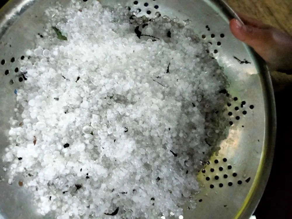 Sau khi tạnh mưa, nhiều người dân đã ghi lại hình ảnh nhiều hạt còn nguyên trạng thái đóng băng, không tan kết lại thành từng khối màu trắng.