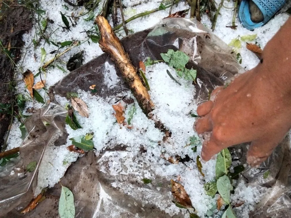 Chiều 1-6, trên địa bàn xã Trà Linh (huyện Nam Trà My, Quảng Nam) xảy ra một trận mưa đá lớn gây thiệt hại cho các vườn Sâm Ngọc Linh.