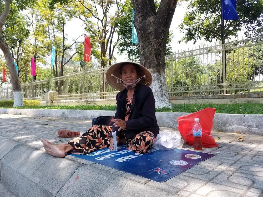 Tại TP Tam Kỳ (Quảng Nam), người dân lưu thông trên đường phải bịt kín mít. Nhiều người không chịu nổi sự oi bức đã mang võng ra các hàng cây bên lề đường để tránh nóng. Cụ già bán vé số cũng chọn một góc nhỏ cạnh lề đường để dừng chân vừa nghỉ vừa chào khách mua vé số.