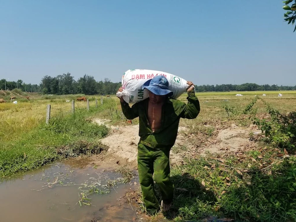 Do nắng nóng nên nông dân Quảng Nam làm việc từ sáng sớm và khi nắng lên thì bắt đầu nghỉ ngơi. Ảnh: THANH NHẬT