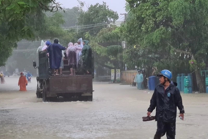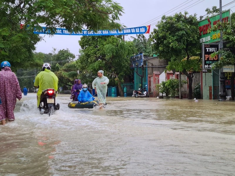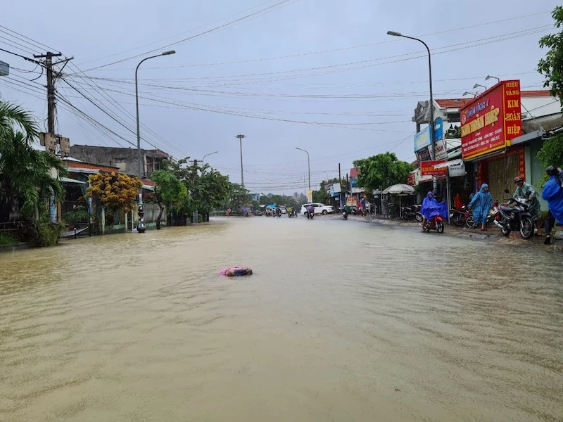 Ngày 10-10, mưa lớn tiếp tục kéo dài cùng với các thuỷ điện bắt đầu xả nước điều tiết, nhiều khu vực của tỉnh Quảng Nam đã bị ngập sâu.