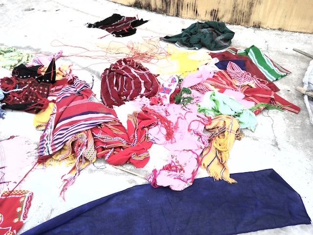Qua kiểm tra sơ bộ, vật thể có kích thước chiều rộng khoảng 2 m, chiều dài 10 m, cùng dây dù dài hàng trăm mét, trên từng đoạn dây dù được buộc theo từng tấm vải trang trí, gần giống thổ cẩm của đồng bào vùng cao, khá bắt mắt.