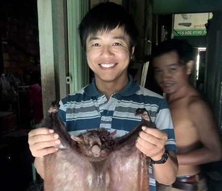 Hình ảnh một cán bộ chia sẻ lên Facebook chụp ảnh với chồn bay khiến nhiều người bức xúc