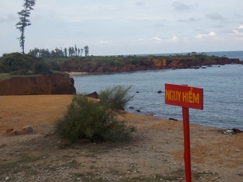 Các vết nứt lớn dọc bờ biển, dải đất có nguy cơ bị sóng đánh sập trong nay mai. Đáng nói hơn, mặc dù cơ quan chức năng đã cắm các biển cảnh báo nguy hiểm nhưng người dân vẫn thường qua lại ở khu vực này. Cùng với đó, tình trạng xâm thực biển vào đất liền làm lộ những khối đá lớn và quặng đá, một số người nảy sinh ý định khai thác, nếu chính quyền không vào cuộc kịp thời sẽ rất nguy hiểm.