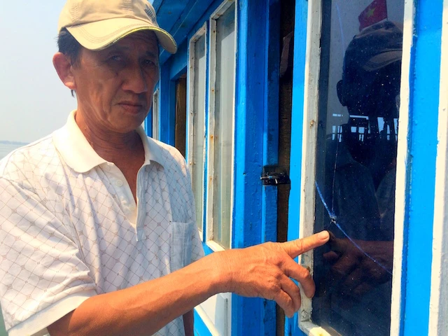 "Lúc này có một thuyền viên đang thả thúng câu bị trúng đạn gây tổn thương ngón tay. Sau đó anh em vào bên trong đóng cửa lại thì những người bên tàu Trung Quốc liên tiếp nã đạn vào phía tàu chúng tôi làm hư hỏng nhiều thứ, may mắn là anh em không thương vong về tính mạng”, chủ tàu Sinh kể lại.