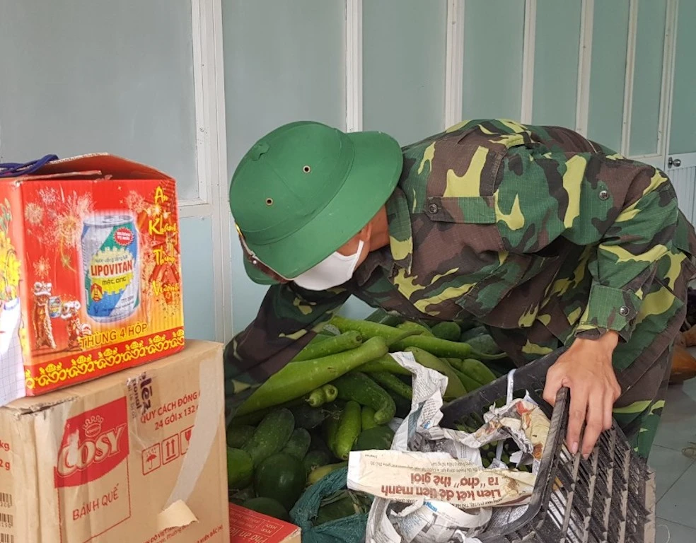 Rau củ được người dân gửi vào khu cách ly tập trung huyện Đại Lộc, Quảng Nam. Ảnh: TN