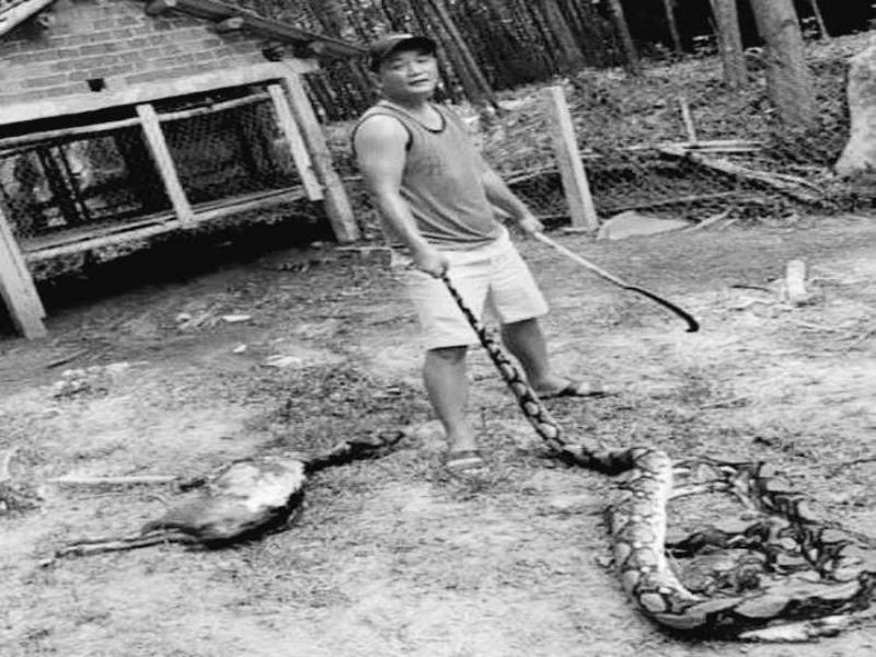 Khi về đến nhà, con trăn đã chết. Mổ bụng con trăn, mọi người phát hiện một con dê trưởng thành khoảng 25 kg nằm bên trong.